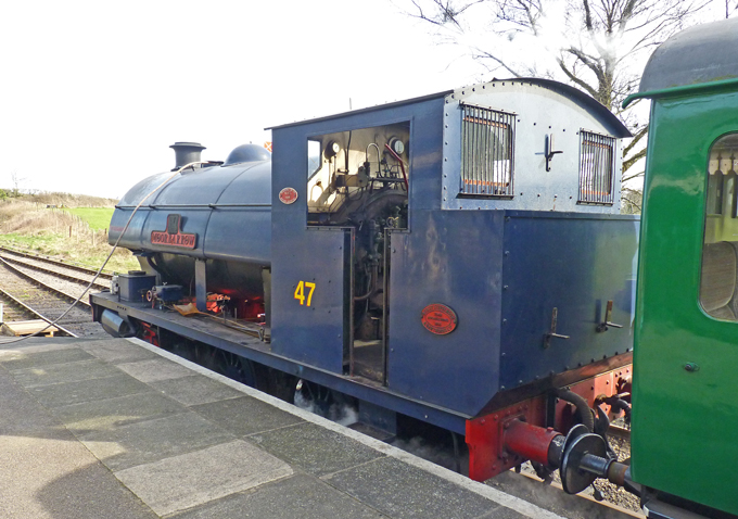 Locomotive 47, which had works number 7849 and is an 0-6-0 ST, is about to run round to the front of the train.