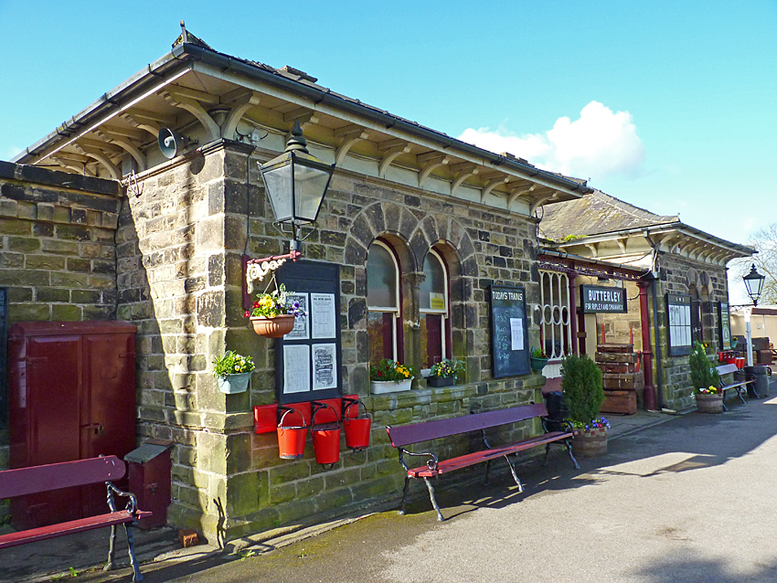 Butterley is the headquarters of the Midland Railway. The station consists of a double platform and Butterley Station Building.