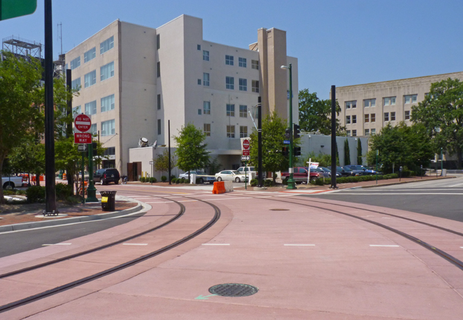 At this road junction, the tracks sweep from Montecello Avenue into Charlotte Street.
